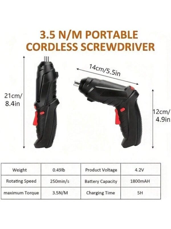 Hii ni bisibisi isiyo na waya yenye betri ya 3.6V Li-ion inayoweza kuchajiwa, ikikupa utendakazi bila usumbufu wa nyaya au hitaji la betri za kubadilisha. Chaji kwa kutumia kebo ya USB na ufurahie utendaji bora wakati wowote, popote.