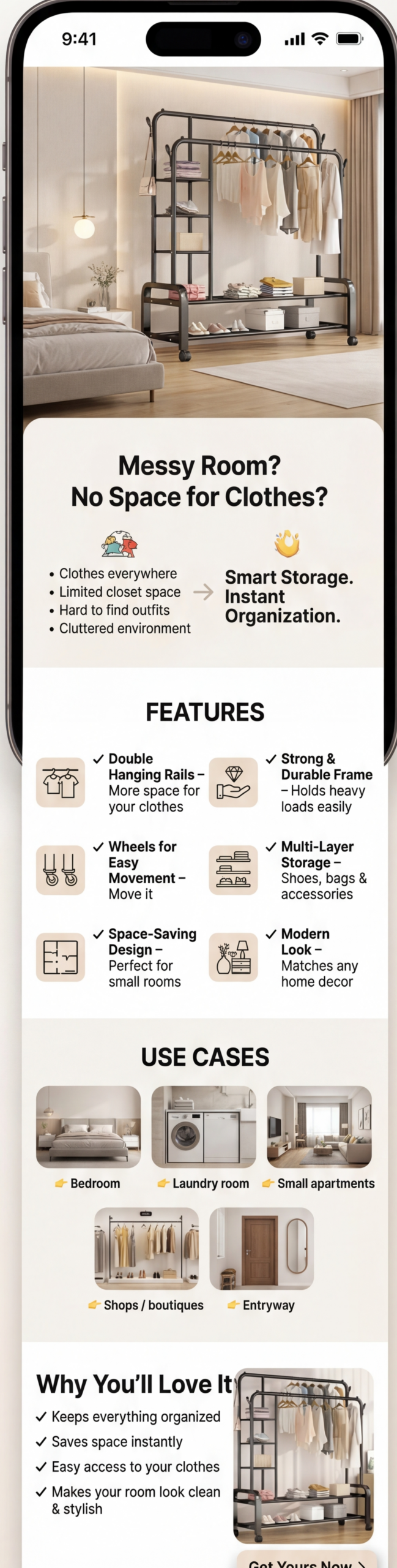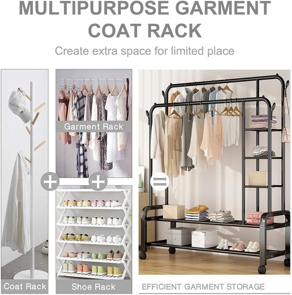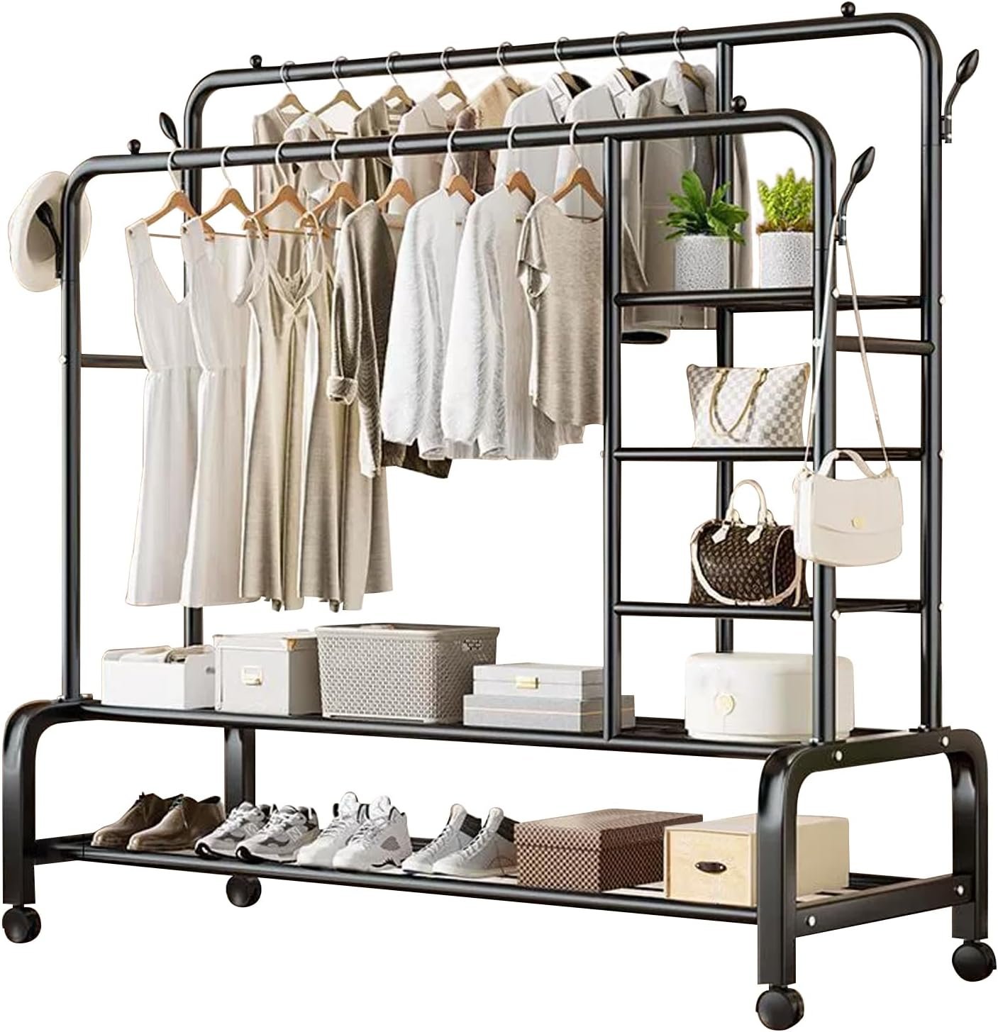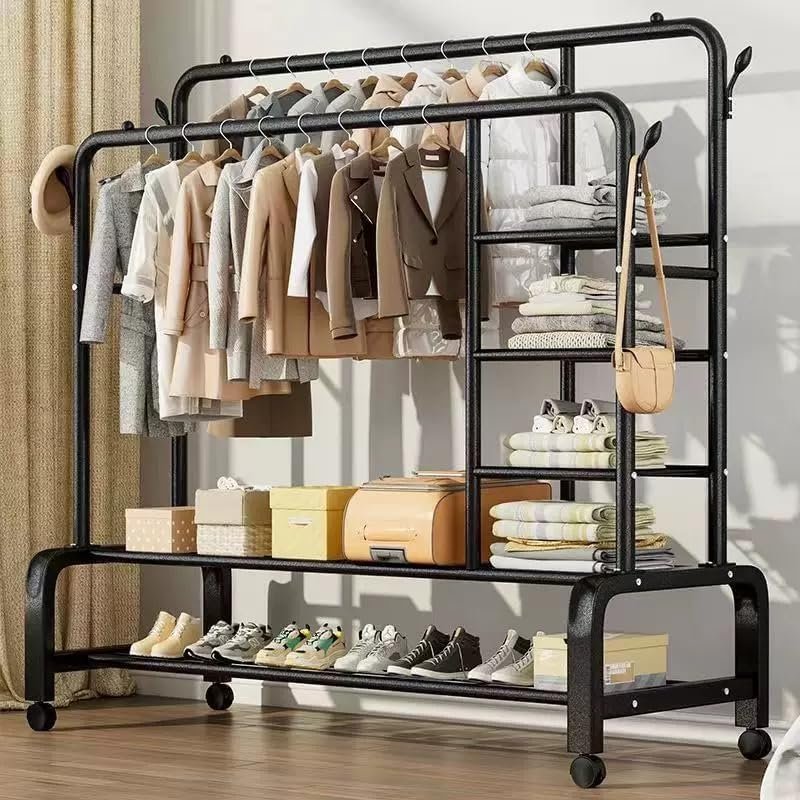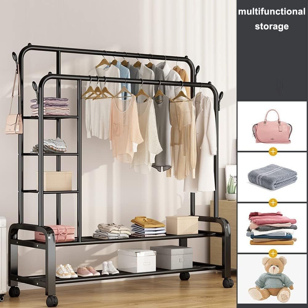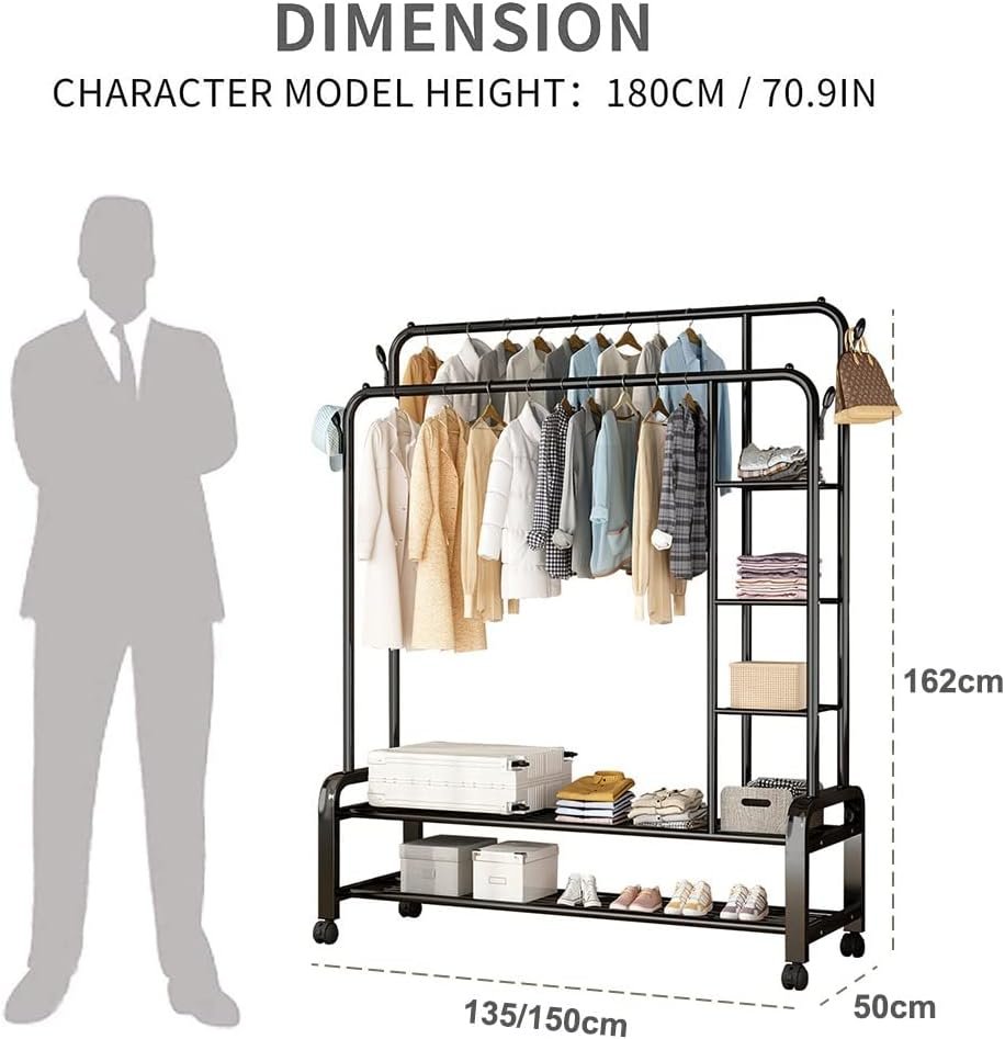 Heavy-Duty Double-rail garment rack with wheels