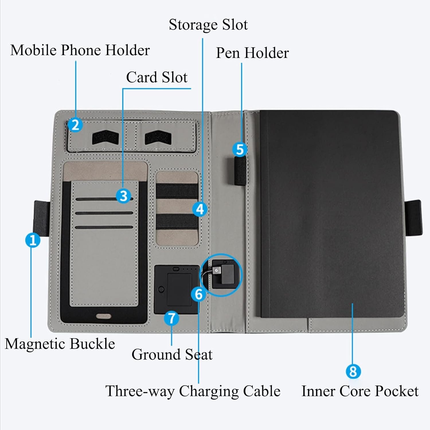 smart business notebook organizer with power bank