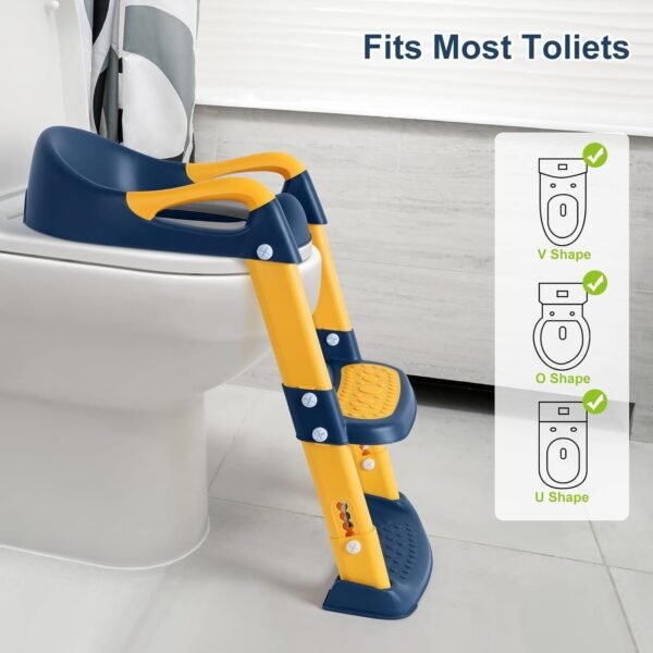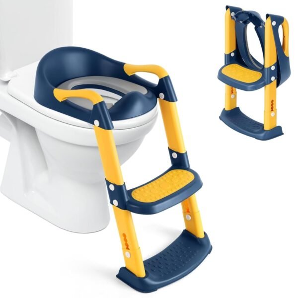 Saidia mtoto wako kujifunza kutumia choo kwa urahisi na kiti hiki cha mafunzo ya choo chenye ngazi. Kimeundwa kwa usalama, starehe, na urahisi, kikiwa suluhisho bora kwa wazazi na watoto.